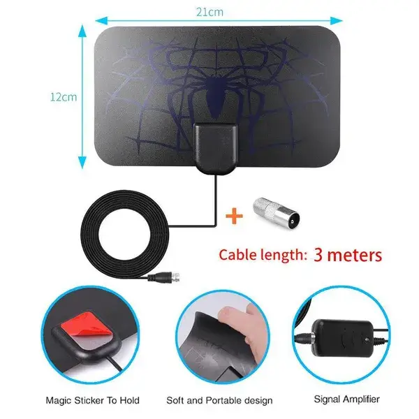 Indoor TV Antenna, Amplified Digital HDTV Antenna, Supports HD 4K 1080P Digital signals, TV Broadcasting, Long Range TV Antenna Signal Amplifier