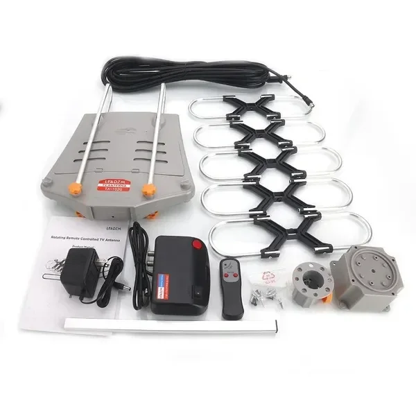 SIZE:A Specifications: 1. Working Frequency: VHF 40~300MHz,UHF 470~890MHz 2. Noise Figure: ≤2.5dB 3. Typical Antenna Gain: VHF 28~32dB,UHF 28~36dB 4. Reception Range: 150Miles 5. Channels: 1~69 6. Impedance: 75ohm 7. Max Output Level: 105dB u V 8. Main Voltage: AC 110V/60Hz 9. Operation Temperature: -10 Degree~50Degree 10. Coaxial Cable: 10M 11. Weight: 63.85oz / 1810g Package Includes: 1 x Outdoor Antenna 1 x Adapter 1 x Remote Control 1 x Instruction SIZE:B Specifications: 1. Frequency: 45-860 MHz 2. Gain: 22-38dB 3. Rotation: 360° 4. Channel: VHF1-12 UHF21-69 5. Impedance: 75 Ω 6. Power: 3W 7. Power Supply: AC110V 8. Rotation Speed: 2-4 rounds/min 9. Remote Controlled Distance: ≤5m 10. Standing Wave Radio: ≤1.5 11. Model: TA-851B 12. Color: Silver 13. Weight: 38.80oz / 1100g 14. Material: Plastic & Aluminum 15. Brand: Leadzm Package Includes: 1 x Main Unit(Bulit-in Amplifier) 4 x Main Unit Supports 1 x VHF Vibrator 2 x Plastic Director Supports 6 x Reflectors 4 x UHF Dipoles 20 x UHF Directors 4 x Plastic Connectors 14 x Screws 3x8 4 x Screws 3x12 16 x Caps 1 x Power Supply Box 1 x Remote-controlled Ware 1 x Instructions.