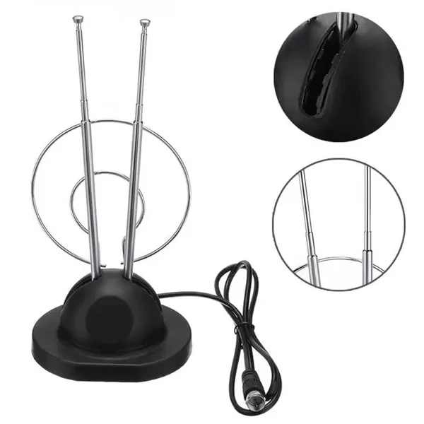 Indoor TV Classic Antenna UHF VHF Air Channels with Extendable Rabbit Ears, Digital TV signal Amplifier included.